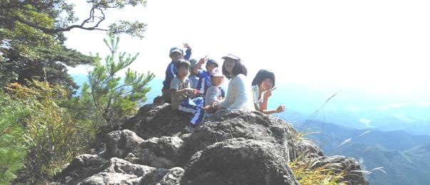 1~4年生7人は、険しい石段・山道の連続にもかかわらず忍耐強く歩きとおし、山頂に到達することができました。