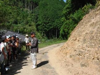 講師にお願いし、鳳来寺山で見られる地層や化石の学