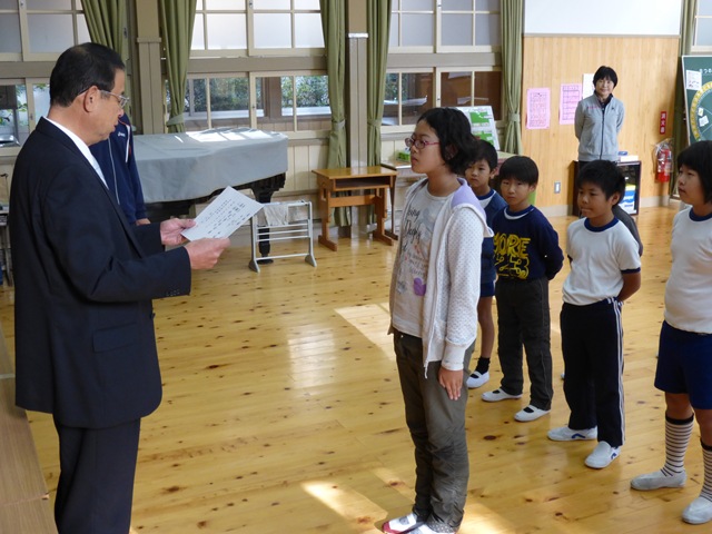 来年3月まで児童会を引っ張って行ってくれる児童会役員の改選が行われ、児童会長には竹下裕唯さん、副会長には熊谷都雲くんが選出されました。