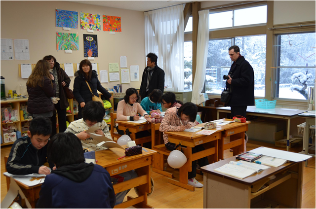 12月10日に積雪が7cmありました。朝から雪だるまを作ったりして遊びました。1月には、佐藤昌三先生が田峯に1カ月滞在されました。その時に、習字や墨絵を習ったりアメリカのお話をたくさん聞いたりすることができました