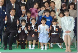4人の子どもたちが入学しました。多貴さん・裕唯さん・琴麻さんのご家庭は、初めての小学生誕生でした。(実乃里さんには、拓未君という明るいお兄さんが6年生にいました。)