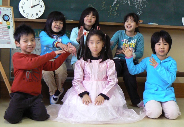 初めての小学校、茶摘みや牛糞作業など学校行事に参加していきました。アメリカ訪問に向けては、高学年が活動する中、2年生の綾美さん・広大君・康佑君の3人と一緒に賑やかな学級をつくっていました。
