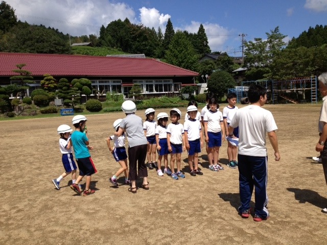 清嶺小学校との集合学習にあわせ、午前中は清嶺保育園の参加も得て、運動会予行練習を行うことができました。