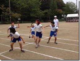 この場面に至るまでには、紅組の奮戦もありました。本校の6年女子も「司令塔」となり、5年女子も大きな声を出して応えていました。写真は、激戦の源平戦(帽子取り・宝取り)の様子です。