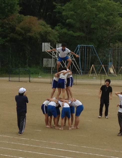 細かいところは、明日からの「分習」で各校が進めますが、両校のメンバーがそろわないと形にならないものもたくさんあります。組立体操は、安全に配慮しつつ、子どもたち自身が自覚と見通しをもって臨めるようにするため、職員も真剣に指導をしていました。それを受けた子どもたちのがんばり、演技の精度の高まりが楽しみです。
