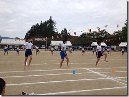 表現運動等も、両校の児童が息を合わせて、「やったー!一発で成功!」という喜びの場面が多くありました。組体操、一輪車競技などでは、参観者が感動の瞬間を分け合いました。