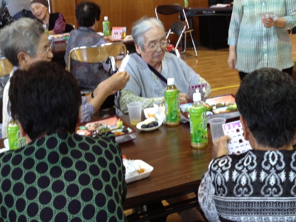 大正琴の演奏会、舞踊に続き、盆踊りの場面では、お年寄り自らが前に出られ、唄や踊り方への助言や応援をいただける一コマもありました。また、ビンゴ大会でも、はりきって大きな声をあげられる姿がありました。
