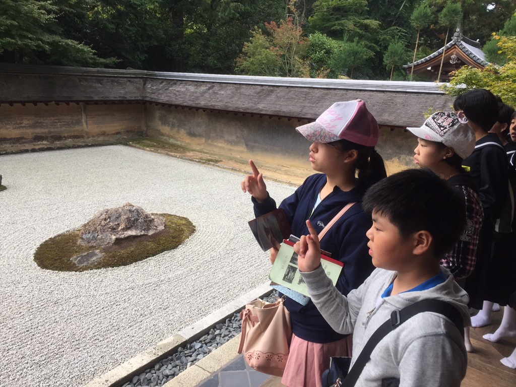 22日午前は、京都市内の学校別研修です。子どもたちの計画で、バスを使い、龍安寺、二条城、そして三十三間堂へ!