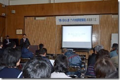 本校PTAが主催し、全9回それぞれの「使節団」に参加した児童のOBをはじめ、そのご家族、田峯区の関係者の方々など多数の皆さんのご参会を得て、事業終了式・懇親会を挙行しました。ありがたいことに、試験前の中学生もたくさん参加してくれました。