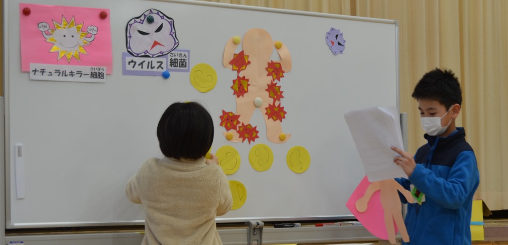 各担当の先生からは、生活安全面、健康面についてのお話がありました。特に、保健の先生には「ナチュラルキラー細胞」の大切さ、そして、春休みを有意義に過ごすための生活リズムについて話してもらいました。