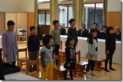 24日には、卒業式の名残りある講堂で、一人一人に修了証を渡し、次の学年へとつないでいく大切な場・修了式を実施しました。特別に「青い目の人形・グレースちゃん」が演台のすぐ脇まで来て、授与を見守ってくれています。“峯っ子”それぞれのスピーチ発表(ふり返り・これから頑張ること)もあり、一年の「節目」にふさわしい式になりました。