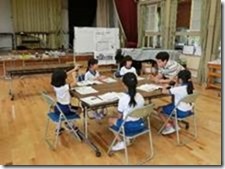 田口小学校の1、2年児童26名が遠足で田峯にきました。田峯城などを見学したあと、田峯小学校を訪問してくれました。事前に話があったので、1、2年生は交流のための準備をしていました。数日前から校内の教室の紹介や青い目の人形の説明を練習している姿を見かけました。「ここは、校長室です。校長先生の……。」など、廊下からよく声が聞こえてきました。田峯小4名で田口小26名というたくさんの子を迎えるので、説明内容を大きな声できちんと伝えるという学習のよい機会になりました。それぞれ分担した内容を教室の前に止まって、説明していました。たくさんの子を前にして緊張したと思いますが、事前に練習した成果が見られました。説明が終わると、外で一緒に遊び、楽しく過ごし、よい交流になりました。