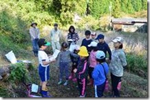 中学年が企画して、ビオトープ観察会を全校で行いました。進行も中学年がそれぞれに分担して進めました。少し前にPTAの方に草刈りをしていただきましたが、自然な形を残しているため、かなり草が生えていました。その中で生き物探しを行うなど、草を気にすることもなく動き回れるのは、さすが「峯っ子」だと思いました。この日は、地域講師として、加藤博俊さんに来ていただき、子どもたちからの質問に答えていただいたり、自然のことについてのお話をしていただいたりしました。全校児童が一緒になって、地域の自然の中でよい学習ができました。加藤さんにはいつも分かりやすく、楽しいお話をしていただき、子どもたちは地域のことに関心を深めています。