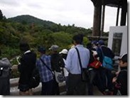 昼食を済ませ、班ごとにタクシーに分乗し、金閣、銀閣、清水寺を順に見学していきました。雨の心配がありましたが、この日は降られることなく見学ができました。金閣では、最初の記念撮影スポットが、多くの人でにぎわうので、団体で写真を撮るのは難しいのですが、お客さんたちが譲り合いながら、すばやく撮影し、無事に記念写真が撮れました。ガイドは、本校の河辺教諭が行いましたが、蓄積された知識で細かく説明してくれるので、子どもたちもよい話が聞けたと思います。教室で聞くのと実際のものを見て聞くのとでは、やはり違います。よい学習になります。