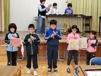集合学習がありました。高学年は、清嶺小で、低・中学年は、田峯小で行いました。低学年の音楽では、好きな楽器を持ち、みんなでリズムを合わせて演奏する取り組みをしました。最初は、ばらばらした感じで音が重なり合っていませんでしたが、最後の発表では、よいリズムで音を重ね合わせていました。自分の好きな楽器を持ち楽しそうに演奏していました。