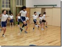 今日は、雨が降り、マラソン練習が外でできませんでした。そこで、講堂で動き作りを行いました。足の使い方、足の回し方、地面の押し方など、基本的な動作が身についてくると、効率的に走れます。スキップ、ももあげなどを行いました。正しく動かすことは、すぐにはできません。思うように動かなくても、よいイメージを思い浮かべながら、試行錯誤を繰り返し取り組んでいくと、少しずつよい動きに近づいていきます。中学生でも、なかなか簡単にはできません。ギクシャクした動きを何度も繰り返しながら、失敗を恐れずやることが大事だと思います。体を動かしながら、「これぐらい上げるのかな」「こういうタイミングで押すのかな」など、考え、調整しながらやるとよいです。まずは、思い切って動いてみるとよいと思います。