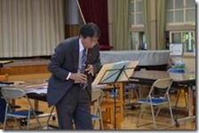 町の音楽会が近くなり、仕上げの練習に入ってきました。この日は、外部講師の清水さんによる今年度3回目の指導をうけました。通して演奏できるようになり、さらに細かい視点で、教えていただきました。音を合わせる意識や音のつなげ方、吹く強さの調節など、小節を区切りながら、丁寧に見ていただきました。人数が少ないため、一人ひとりの音が明確になるので、なかなか大変ですが、清水さんの話をよく聞き、一生懸命に調整しました。一つ一つの音に意識が深まると、少しずつきれいでよく合った音になっていきました。当日は、これまで学んできたことを精一杯出してくれればよいと思います。一生懸命取り組んできたので緊張しますが、失敗を恐れず発表すればよいと思います。緊張も失敗も勉強です。きっと思いのこもった音を届けられると思います。