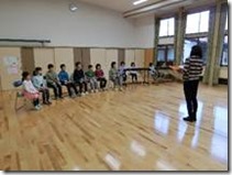 町の音楽会に向け、最後の仕上げとして、老人クラブの皆さんに聴いていただきました。区の改善センターに行き、「埴生の宿」「エーデルワイス」「いつも何度でも」の3曲を演奏しました。発表当日も、「埴生の宿」「エーデルワイス」「いつも何度でも」の3曲ですが、よい発表の機会となりました。当日は、自己紹介はありませんが、この日は、地域での演奏ということで、「……の孫で……です」「……にすんでいる……です。」というように自己紹介をすると、会場からたくさんの拍手をいただきました。学校の関係者以外の方に、学校とは違う場所で、発表できたことは、当日に向けたよい経験になったと思います。老人クラブの皆さん、ありがとうございました。