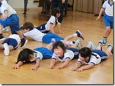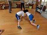 低学年は体育で体つくり運動に取り組みました。前屈やブリッジなど、自分の体をいろいろと動かせるように、二人一組で確認しながら、楽しく取り組みました。
