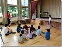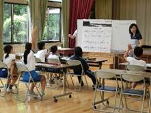 中学年は外国語活動に取り組みました。いろいろな国のあいさつを行いながら、英会話進めていきました。バーナ先生の英語の指示を担任のサポートを受けながら。よく聞き取って取り組んでいました。中学年でも、慣れてくるとよく聞き取ります。このネイティブな英語の発音に慣れることが大切だと思います。バーナ先生のテンポのよい展開に楽しく取り組みました。