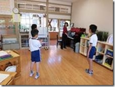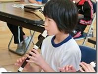 中学年は、音楽を行っていました。リコーダーを正しい姿勢で吹くように、一つ一つの体の部位の位置を確認しました。よい姿勢を意識して吹きました。リコーダーの音は、繊細です。よい姿勢を作ってよい音が出せるとよいです。