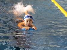 中学年は、けのびと伏し浮きを意識した練習を行い、よい姿勢の作り、バタ足練習へとつなげました。何度も壁をキックして、けのびの距離を伸ばそうとしました。中学年も昨年度より、力強さと水慣れ感が増して、けのびの伸びが増してきたように感じました。