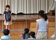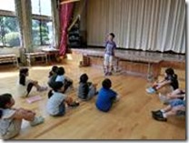 この日の小林さんは、実は茶畑の所有者でもあり、学校のお茶摘みでもずいぶんとお世話になりました。今回がはじめての読み聞かせでしたが、わかりやすい声で様子をとらえた読み聞かせは子どもたちをひきつけ、子どもたちはとても楽しむことができました。「ともだちや」と「したきりすずめ」の2冊の本を読んでいただき、充実した時間を過ごせました。ありがとうございました。