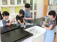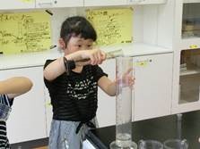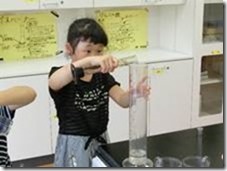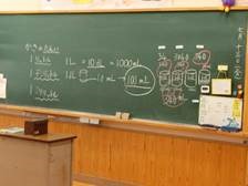 2年生の算数では、「かさのたんい」について学習しました。牛乳瓶・牛乳パック・家で使うコップにそれぞれどれぐらい入るのか、実際に水をいれて確認しました。理科室のメスシリンダーを使い、容器の水をメスシリンダーに入れてはかるのか、メスシリンダーではかった水を分割して容器に入れ、どれぐらい入るのか、いろいろ試行錯誤しながら楽しく授業をしました。