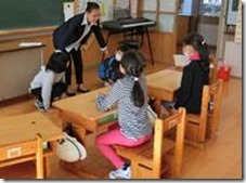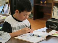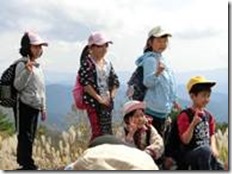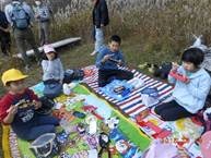 最初は三つの班に分かれ、地区内になるビオトープで様々生き物を捕まえて観察しました。バッタ、カマキリ、ホトケドジョウ、ゲンゴロウ、ドジョウなど、たくさんの種類の生き物を捕まえて、虫かごの中に入れ、観察しました。捕まえると博敏さんに名前を教えていただきました。植物も珍しいものがいくつもありました。これらも加藤さんに声をかけ、名前を教えていただきました。生き物を探して活動している様子は、とても生き生きとしていました。草地の中でバッタや芋虫を見つけて、手にとってかごに移したり、水の中にたもを入れて捕まえたドジョウやゲンゴロウを手に取ったり、木に登ってカマキリを取ろうとしたりと、生き物を怖がることなく、生き物を大切にし、楽しそうに接している姿は、さすが田峯っ子だと思いました。