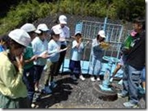 毎年、加藤博俊さんの「千年の森」で、いろいろなことを教えていただきながら、ブナの植樹をさせていただいています。今年も加藤博俊さんとボランティアの方々に教えていただきながら行いました。6年生の子は、自分で植えたブナが今年で6本目となりました。自分の植えたブナが育ち、地域の環境保全に役立っていくことを知ることは、ふるさとを思い、自然を大切に思う気持ちが育まれていくように思います。また、作業の中では、高学年が低学年とペアになり、作業の面倒をよく見てくれました。
