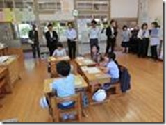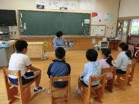 6限目に鈴木聡一先生を講師としてお迎えし、戦時中の当時の様子をお話していただきました。昭和20年、戦局が悪くなってきて、アメリカの人形を処分するように国から命令が出たときのことを、当時の様子が伝わってくるようなお話をしていただきました。「国の命令は絶対であること」「聡一先生の父親が、人形を処分しなければならない前日に、聡一先生に『処分』という言い方ではなく、『いなくなる』という言い方をしたこと」「人形を隠す前日に聡一先生に抱かせたこと」など、当時の国の状況や聡一先生の父親(当時の校長先生)が人形を大切に思いどれだけ重い判断をしたかなど、とてもよく分かりました。また、「日本の人形とは違うかわいさがあったこと」「青い目の人形の歌のこと」などから、小学校でとても大切にしていたことや、友好の印としての青い目の人形の意義を再認識できました。最後に児童会長がしっかりとお礼のことばを述べました。