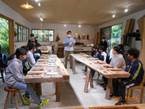 最初に「木と革のaoyama」さんの素敵な工房で、箸づくりをしました。小学生にも取り組める作業で、オリジナルの箸ができました。その後の質問コーナーの中で、青山さんから、最初は都会に就職し、その後地元に戻って今の仕事につき、どのような思いで取り組まれているかという貴重お話を聞くことができました。地域を大切に思い、仕事に真摯に取り組む姿は、人としての生き方を学ぶよい機会となりました。