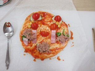 1・2年生は、生活科「畑で収穫した野菜を使ってのピザづくり」でした。本場のようなおいしさでびっくりです。