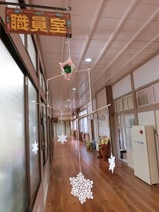 あけましておめでとうございます。玄関に正月飾りを飾って、新年を迎えた田峯小学校です。