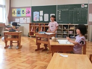 ただ、このお話の中に出てきた「ざしき」「土間」「むしろ」という言葉は、もう、子どもたちの身近なものではないということがわかりました。
