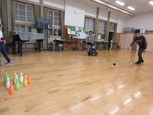 月曜日のなかよしタイム、講堂でボーリング大会が行われました。