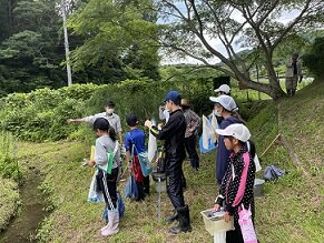 地域の方を講師に招いて、全校でビオトープに行き、動植物を探しました。