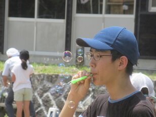 1学期の終わりのお楽しみ会の意味もあって、シャボン玉で全力で遊びました。
