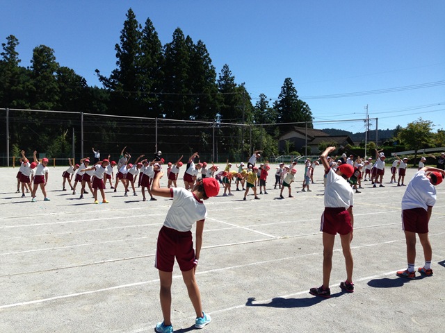 紅白リレーが盛り上がっています。これから、各チームがどのような作戦をたててくるのか、楽しみです。また、開会式のラジオ体操の練習を、保育園と合同で行いました。みんな上手になりました。