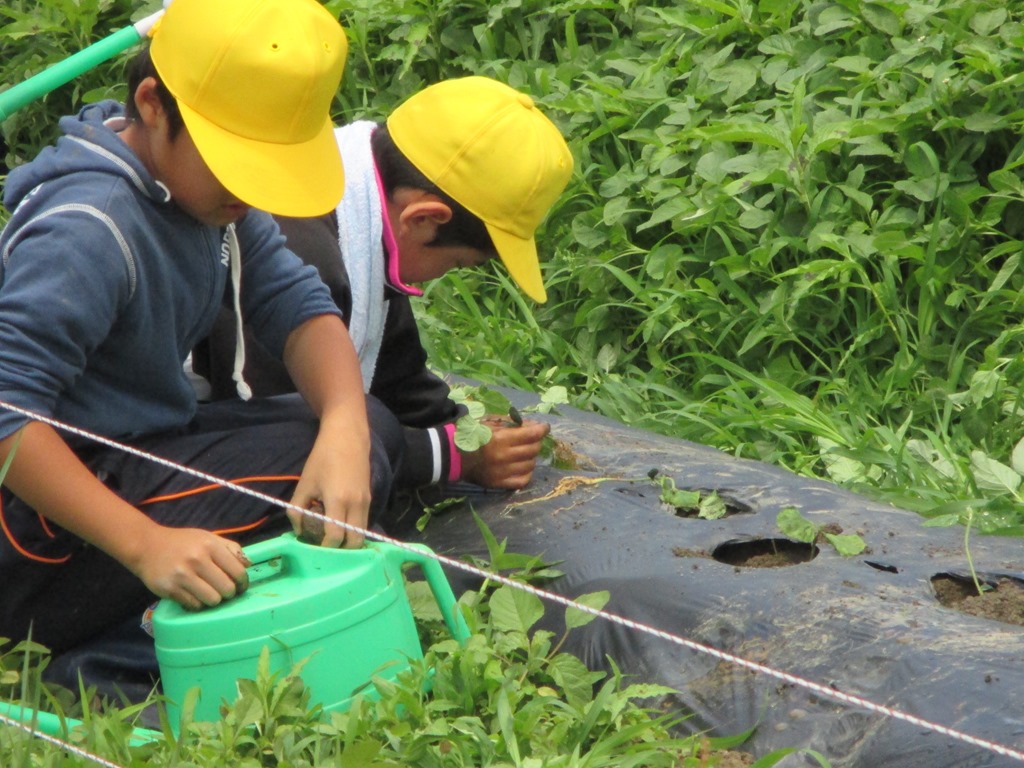 名倉小は高冷地なので、多少成長が遅いかもしれません。実は、オクラを植えた子は、発芽温度に達してなかったせいで、発芽しませんでした。それで、かわりにナスを発表しました。