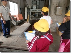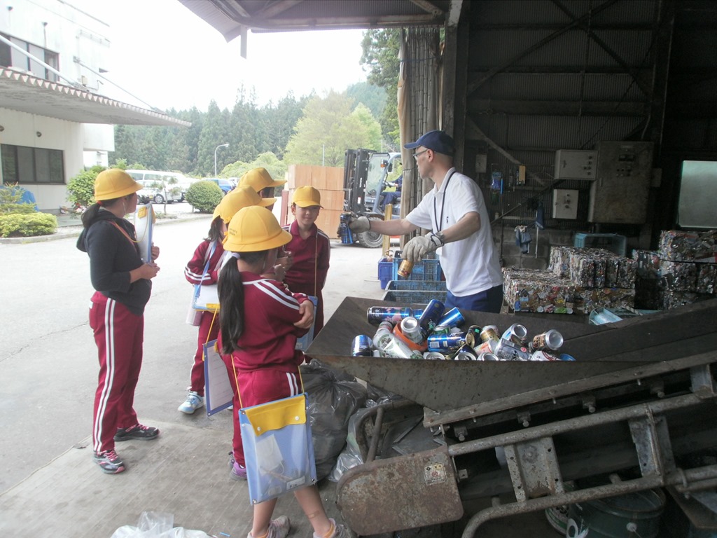 巨大なクレーンでゴミを混ぜるところを見ました。どうして、ゴミを混ぜるのかな?その後、スチール缶とアルミ缶に分ける機械、たんすや本棚を細かくする機械を見ました。たくさんの缶がプレスする機械で見事に小さくなっていくのをみて、子どもたちは驚きの声を上げていました。
