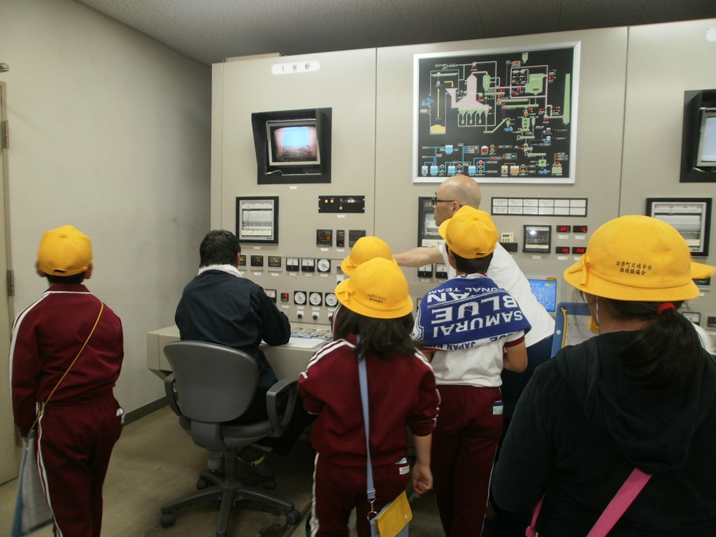 コンピュータがたくさんある部屋を見せていただいた後、所長さんに聞きたいことを質問しました。「ゴミの量を計る理由は何ですか?」「24時間ゴミを燃やして、見ているのですか?」など、たくさんの質問に、所長さんは丁寧に答えてくださいました。