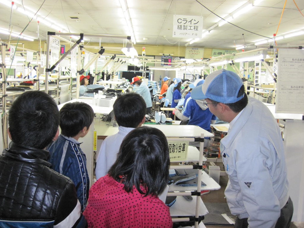 次に、トヨタケ工業さんに見学に行きました。トヨタ自動車のシートカバーをつくっているところを間近で見たり、お客さんの注文に合わせて種類の違う製品をつくって出荷していることを聞いたりし、仕事に対する責任感と大変さを学ぶことができました。
