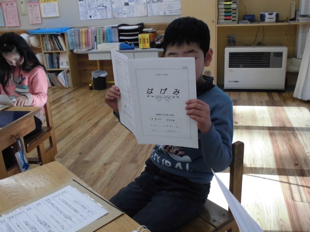 12月10日の個別懇談の折に、保護者の方がオハツキイチョウを持ってきて見せてくださいました。家の近くのイチョウだそうです。「設楽町には、神田とここにしかないそうです。とても珍しいイチョウです。」とのことなので、全校の子どもたちに紹介しました。![]()
