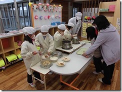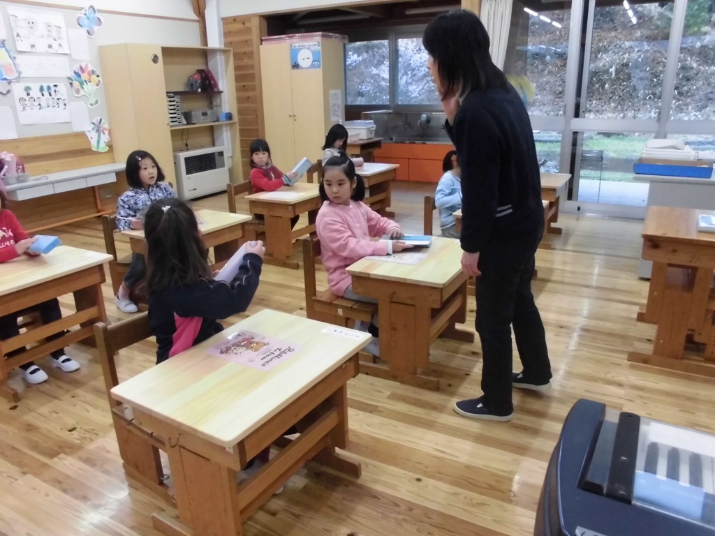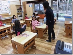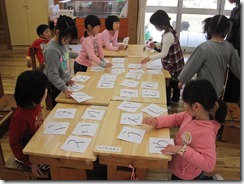 1年生はひらがなに親しもうとカードを使って言葉集めをしました。2年生は『午前』、『午後』、『正午』という時計の読み方の違いを見つけようとしていました。