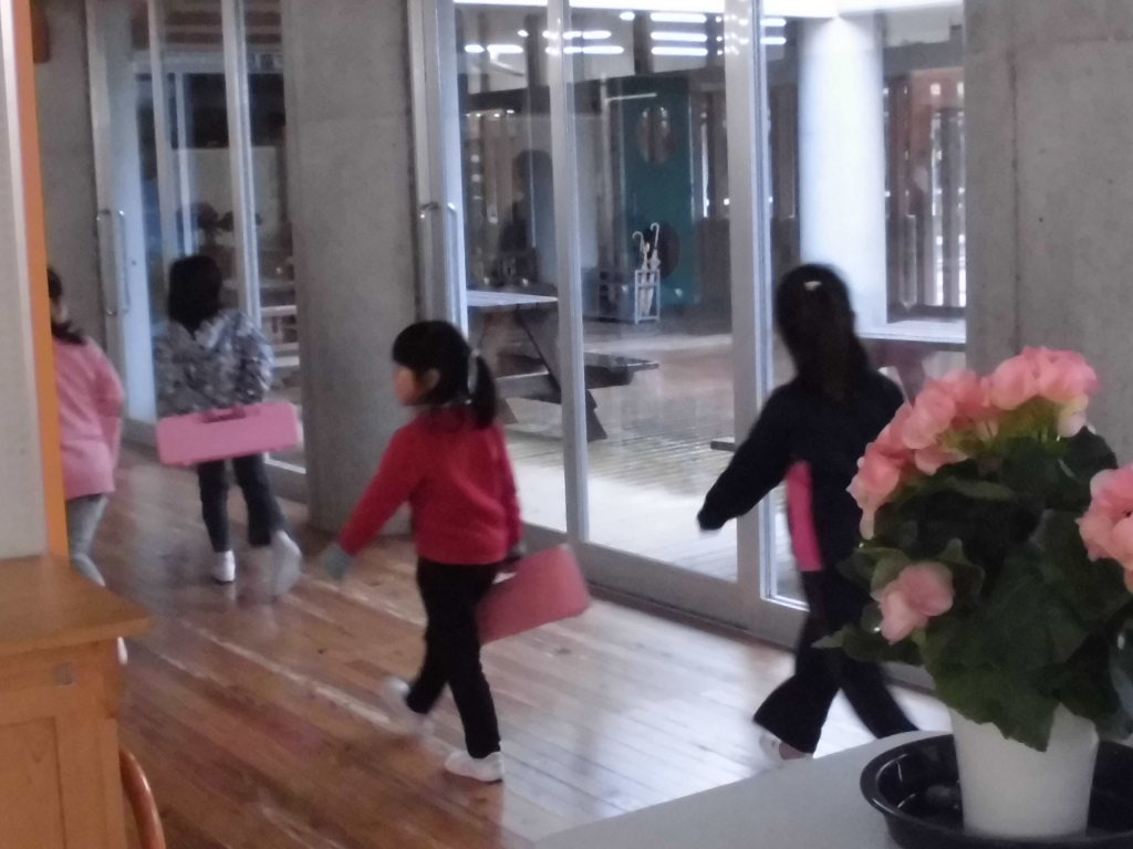 離任式が終わると、各学年で先生方を招いて、おもいおもいに楽しんでいました。