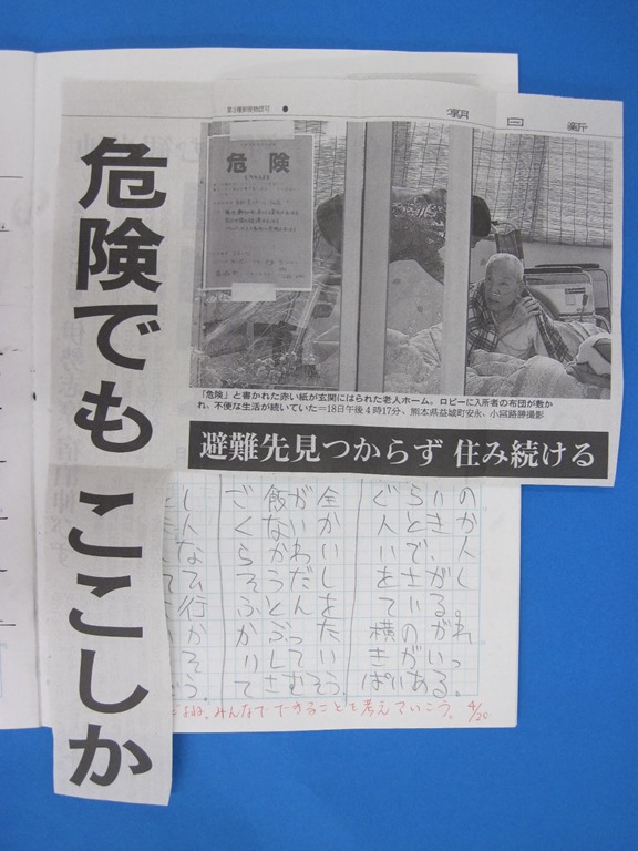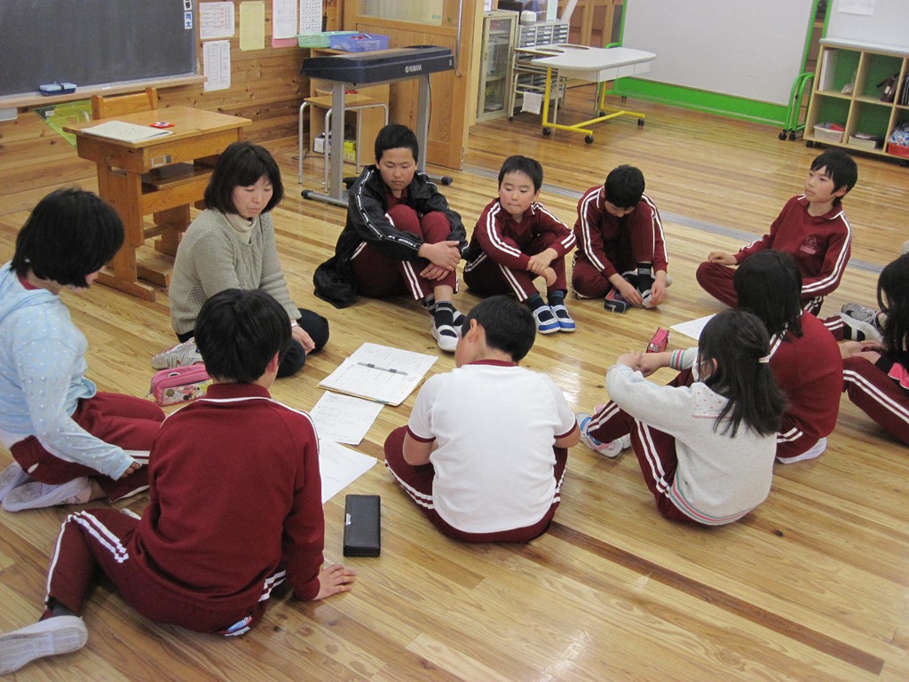 5年生は「だいじょうぶ だいじょうぶ」に込められた思いを考えて音読しました。6年生は「生きる」の朗読をどんなふうに工夫しようか意見を出し合いました。