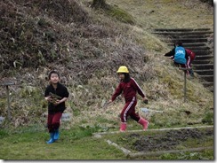 3年生(写真右)は、「げんき100%がんばるぞ」です。楽しく仲のよい3年生、礼儀正しい3年生、10人の力を合わせてがんばる3年生になることが目標です。