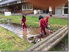 名倉駐在所の上田さんがDVDを見せてくださいました。その後、道路を渡るときには、「止まる 見る 待つ」が大切であることをご指導してくださいました。そして、子どもたちは、「止まる 見る 待つ」をダンスと一緒に覚えていました。