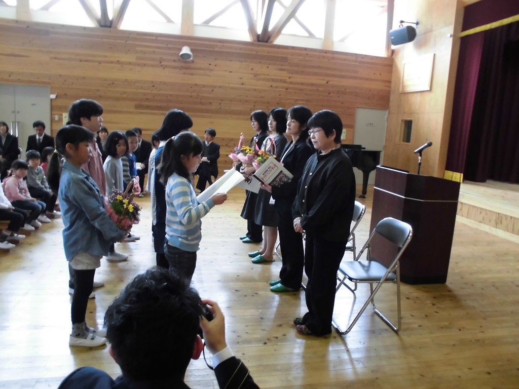 子どもたちからは、思い出や感謝の詰まった作文と花かごをプレゼント。